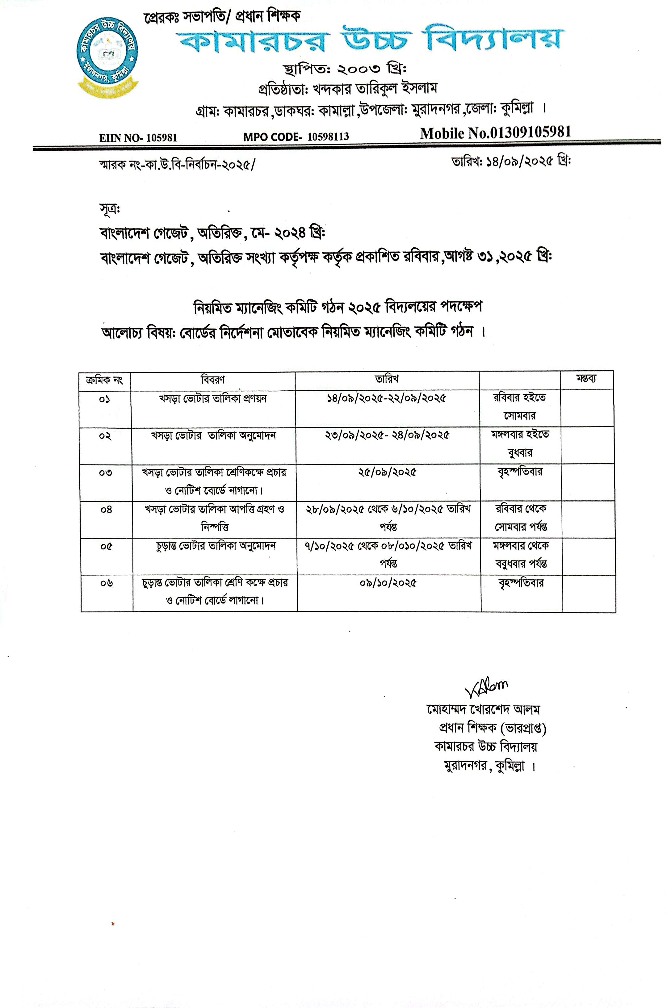 | ১ | ম্যনেজিং কমিটি নির্বাচন-২০২৫ | ২০২৫-০৯-১৭ |